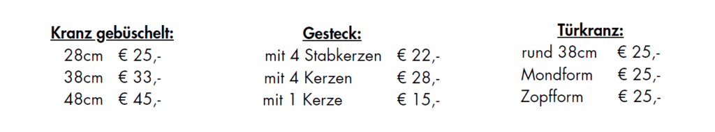 Dein Kranz ist nach der Bestellung für Dich bei unserem Punschstand vor der Volksschule Langenzersdorf an folgenden Tagen abholbereit und in Bar zu bezahlen: